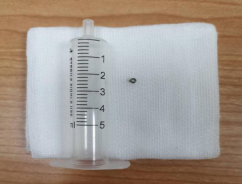 在了解到患者的顾虑后,我们找出了废弃的鼓膜通气管:“老爷子,这是咱们术后取出的置管,进手术室里放在鼓膜上的,就是这么个小东西,您瞅瞅。”