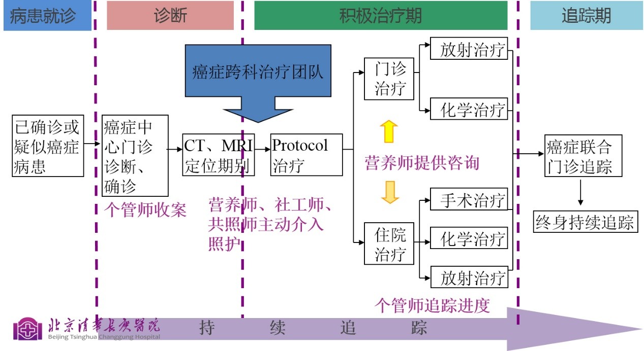 图为癌症患者照护程序,其中,个案管理师发挥着重要的作用