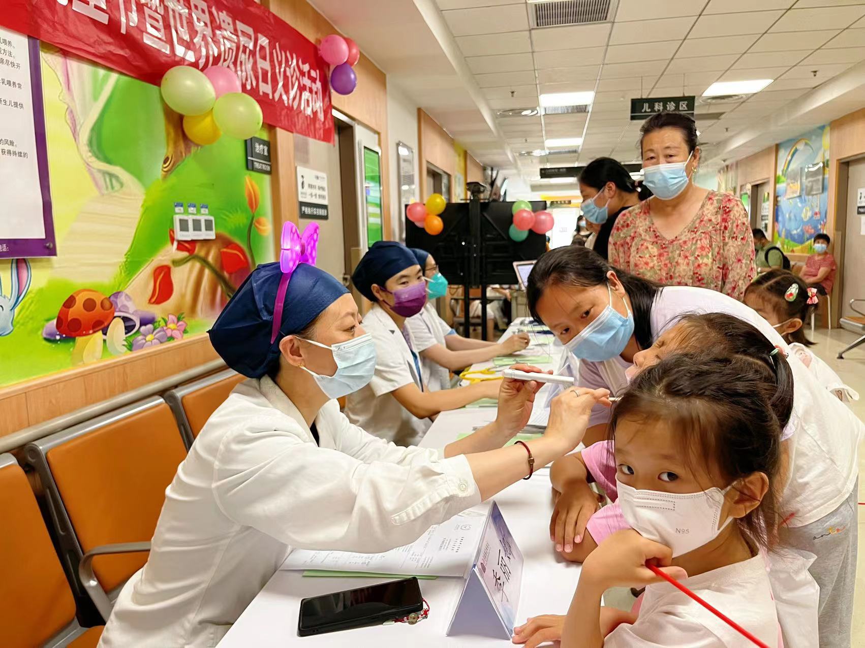 在儿科义诊环节,儿科晁爽副主任、季丽娜主任医生、尹小梅主治医生、毛桂龙主治医生、贾胜男医生、汪顺雨主治医生、樊丽荣主治医生一一解答了家长关于儿童遗尿、生长发育、哮喘等问题,让家长们可以及时了解孩子们需求,同时儿科党支部其他医护人员、医务经管党支部党员以及社会服务部的医务社工们为共同为现场小朋友们送出了祝福及儿童节礼物,让大家满载而归。