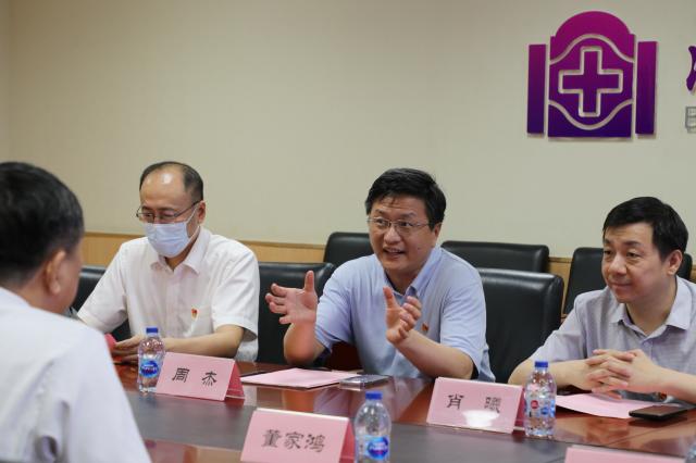 董家鸿对周杰一行人员的到访表示热烈欢迎和衷心感谢,他指出,医院高度重视与研究生院的共建交流,联学活动是进一步把主题教育落到实处的具体举措,他期待加强研究生院与医院间“纽带”关系并给予充分支持与指导。董家鸿强调,医学研究生教育专业性强、门类复杂,需树牢质量意识,打造卓越文化,多措并举助力医学研究生教育,夯实推动健康中国发展的医学人才基础,大力培养复合型医学人才,持续推动清华新医学高质量发展。