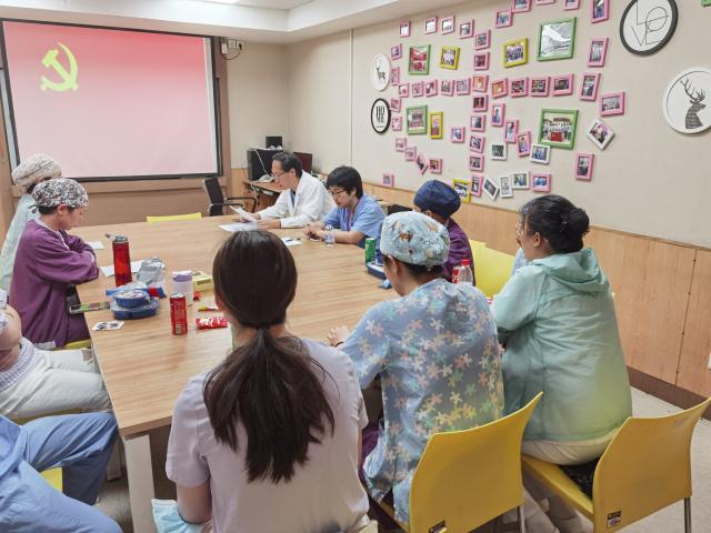宋琳琳强调,全体党员要深刻领悟经验启示,推动学习贯彻习近平新时代中国特色社会主义思想走深走实。与工作实际相结合,坚持习近平新时代中国特色社会主义思想的科学指引,把实现人民对美好生活的向往作为出发点和落脚点,为群众办实事,解决病患急难愁盼问题,在医疗、教学、科研、管理服务等中心工作中取得切实进展与成效,认真总结“两满意双提升”工作经验,积极申报第二批品牌创建工作,推动党建与中心工作深度融合,推动医院高质量发展。