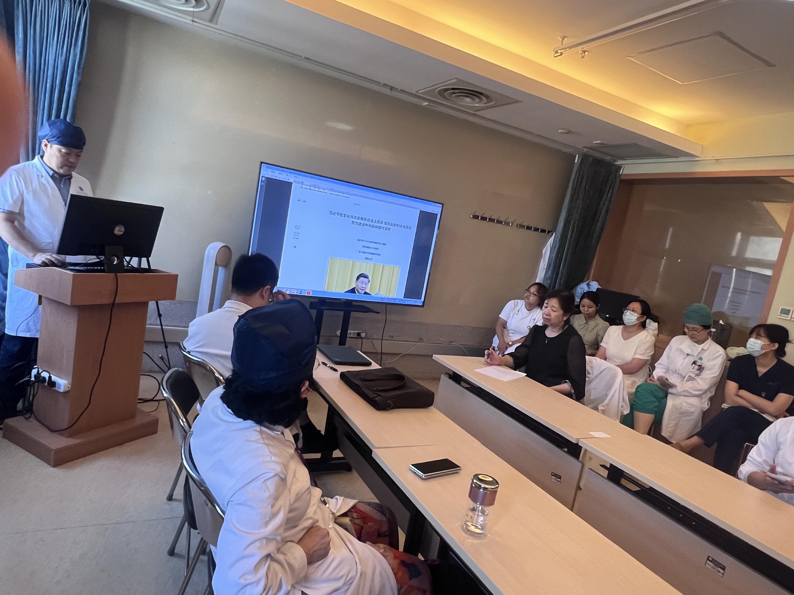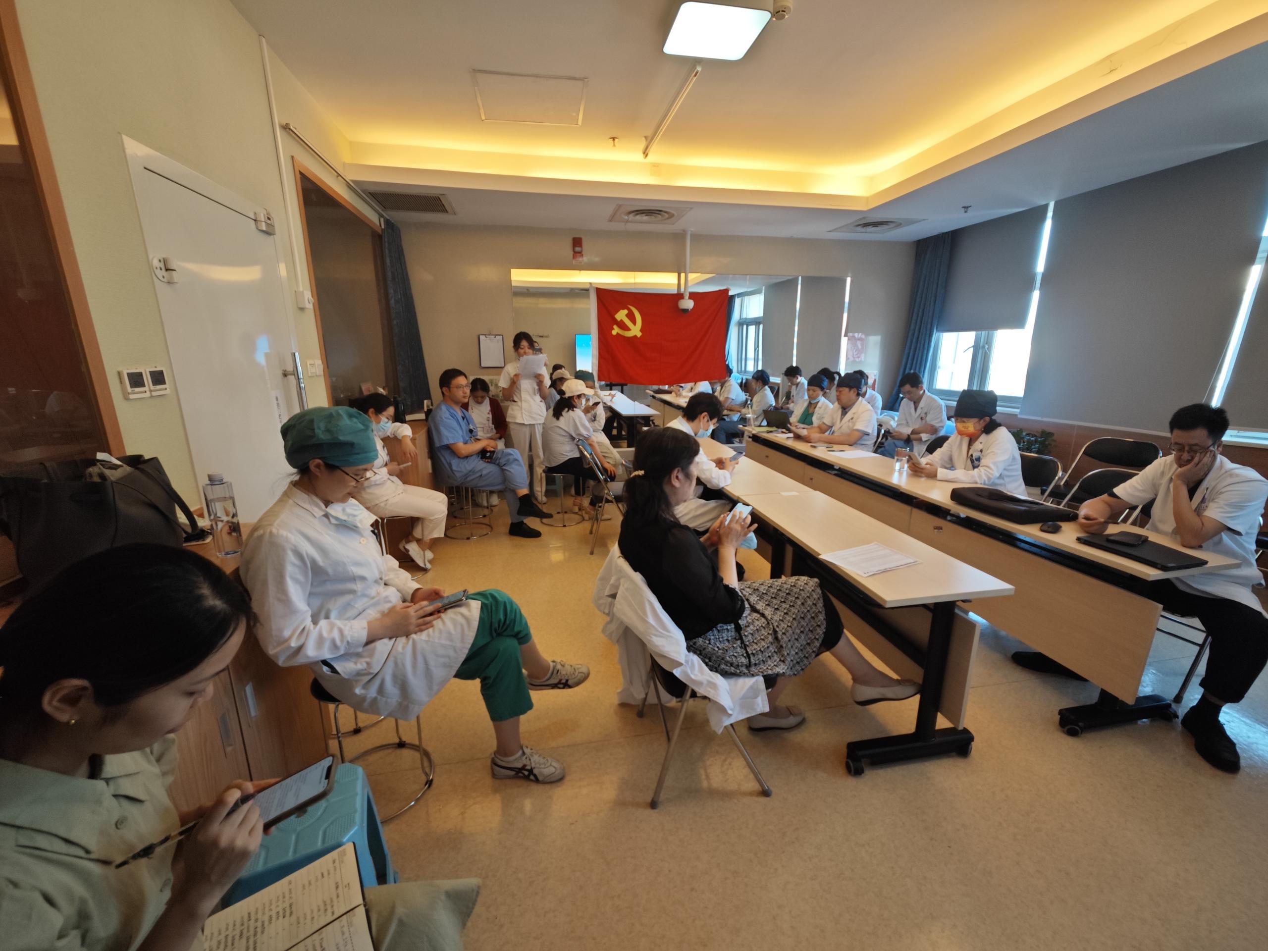 本次会议第二项议题是:深入学习“贯彻习近平总书记在中共中央政治局第五次集体学习时的重要讲话精神”。“习近平强调,建设教育强国是全党全社会的共同任务,文件中培养什么,怎样培养人,为谁培养人是教育的根本问题”,全体与会人员在支部书记曹平平主任带领下认真学习。曹平平书记谈到,作为清华大学附属医院,我们有责任担起临床医学生的教育重担,加强师德师风建设、热心从教、精心从教。