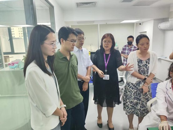 座谈活动开始前,医疗器械二室党支部一行5人首先在孔艺颖同志陪同下依次走进北京清华长庚医院医学研究中心实验平台和放射诊断科,现场参观了智能管理蜡块柜、便携式质谱仪、光声成像仪、临床实用型磁共振图像增强线圈等国际国内领先的科研创新成果,王韫芳和郑卓肇分别对设备的使用和转化情况进行了讲解演示。
