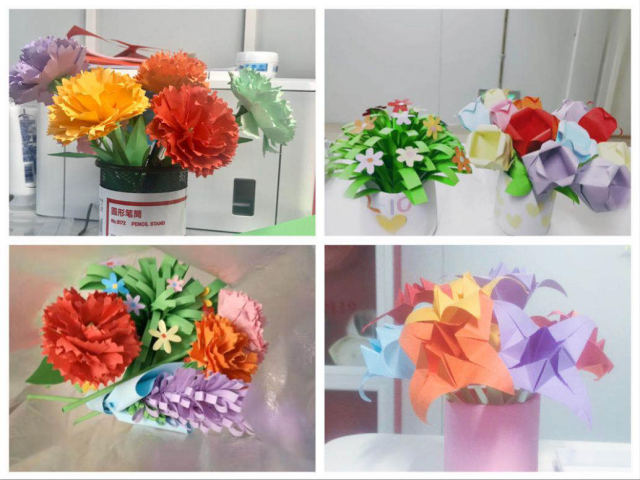 由此及彼,在北京小汤山定点医院做筛查的人员,落地祖国后还未有这样的机会,欣赏春景。于是,在换班之余,我和小伙伴们萌生了一个想法——搜集彩色打印纸,折成手工花。这真是一个一举多得的行动,大家一起奇思妙想做手工康乃馨、郁金香、百合、薰衣草、吊兰,充实了业余的隔离时光;而办公区也自此多了一抹色彩;最重要的是,在需筛查人员顺利出院时、焦虑等待时、得知不理想的检查结果失落时,我们除了言语的安慰,还有了一份特别的鼓励。