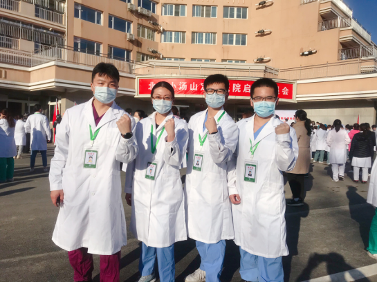图为张明强、马序竹、张陈光、周杰四位医师在北京小汤山定点医院合影