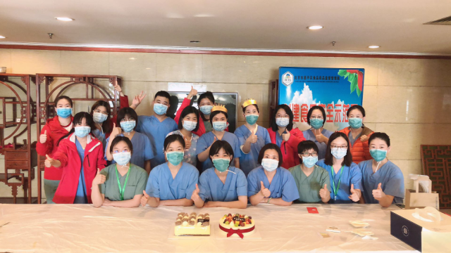 自疫情发生以来我一直参与在疫情防控的第一线,虽不能与家人同聚,但是同事们对我的关心呵护, 使我感到了温暖,有家一样的感觉。大家纷纷送上生日的祝福,感动溢于言表。我同刘娅、张磊、陈慕洁、顾镇怡、刘欣、马海月、郝珊珊、沈文燕9 人被安排在同一病区工作,生活里我们相互照顾,工作上我们相互沟通、相互协作,大家的叮咛萦绕耳旁。回首33 天来的工作,有面对疫情的担心,有病房初建的困难,也有紧张工作的压力,但与日俱增的是各位同事关心支持的温暖,这33 天的朝夕相处,我们在疫情中谱写着属于我们的战友情谊。