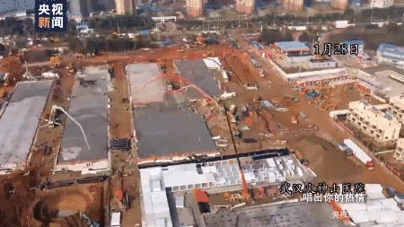要向昼夜施工在10天时间内拔地而起崭新医院的一线工人们致敬