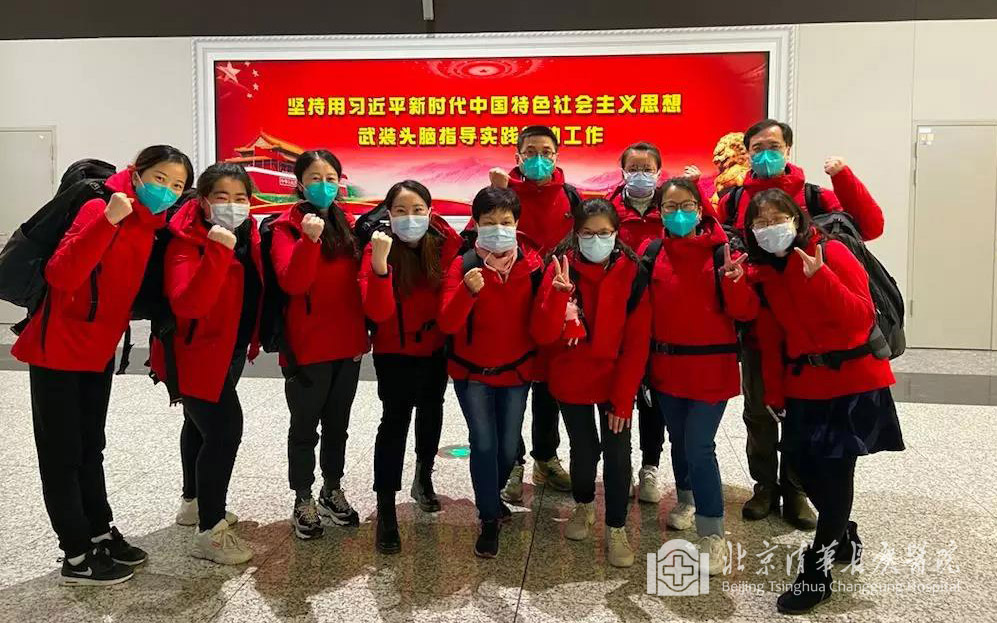 清华长庚支援武汉医疗队抵达武汉后的第一张合影
