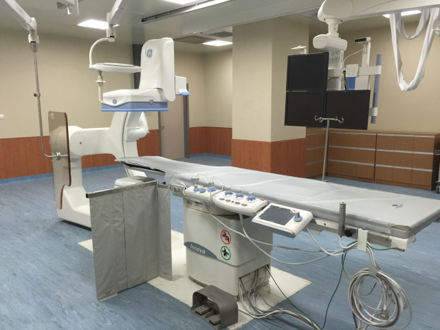 医院心血管中心导管室配备4100mm超大平板的GE品牌Innova 4100-IQ,超大平板可以覆盖心脏、颅脑、上肢、下肢血管等较大介入部位,可为各病种患者提供一体化解决方案。本中心配置了世界先进的St. Jude圣犹达三维标测仪及电生理记录仪,压力监测模块可使心脏电生理手术更加安全高效;美敦力品牌冷冻消融仪为世界首选心房颤动介入肺静脉隔离冷冻消融术唯一设备,可将传统射频消融的手术时间缩短80%以上,有效性与预后均大大提高,患者可以得到更好、更安全高效的治疗。