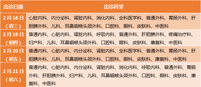 2月18日(初三)-2月21日(初六):假日门诊-上午诊