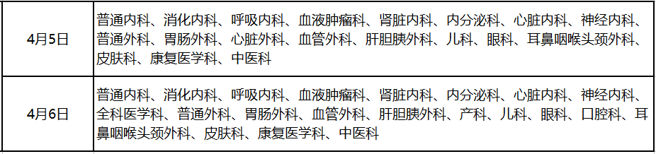 依照全国清明节放假安排,考量医管局关于假日诊开诊的政策要求及病患就诊基本需求,本院假日门诊开诊安排如下: