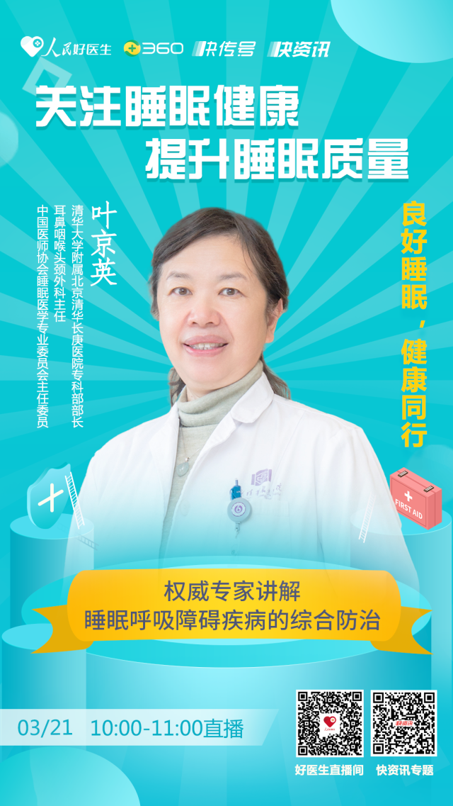 清华长庚医院耳鼻咽喉头颈外科睡眠呼吸障碍治疗团队将于3月21日为大家带来三场科普直播,欢迎大家扫码观看。