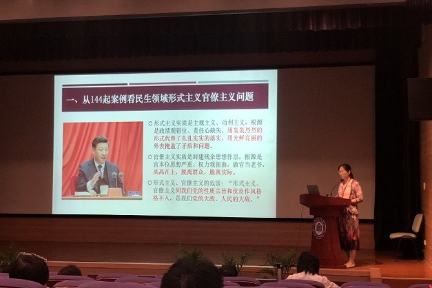 纪检监察办公室刘妍君代表报告,主要内容包括中央纪委国家监委网站通报的民生领域形式主义官僚主义曝光问题统计,五一、端午期间“四风”问题监督举报曝光专区典型案例,重点宣导了清华大学《关于“五一”期间深化落实中央八项规定精神、防止“四风”问题的通知》中进一步抓好党员和师生员工特别是领导干部“五一”期间廉洁自律工作,严明纪律要求的具体内容。