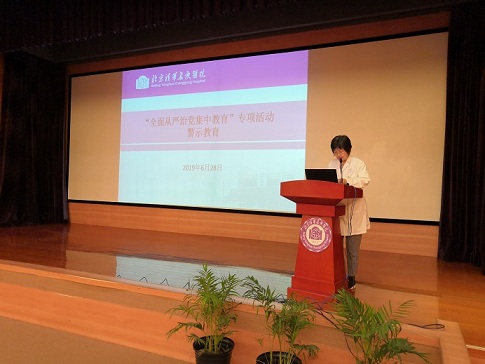 北京清华长庚医院7月1日电(通讯员 刘妍君)2019年6月28日,在北京清华长庚医院的全院干部会上,院党委副书记、纪委书记陈旭岩作“全面从严治党集中教育”专项活动警示教育报告,党委书记周月红、执行院长董家鸿、总执行长周碧琴等院领导出席会议,临床医技各科部主任、护理部及行政部门主管、党工团干部参加会议。