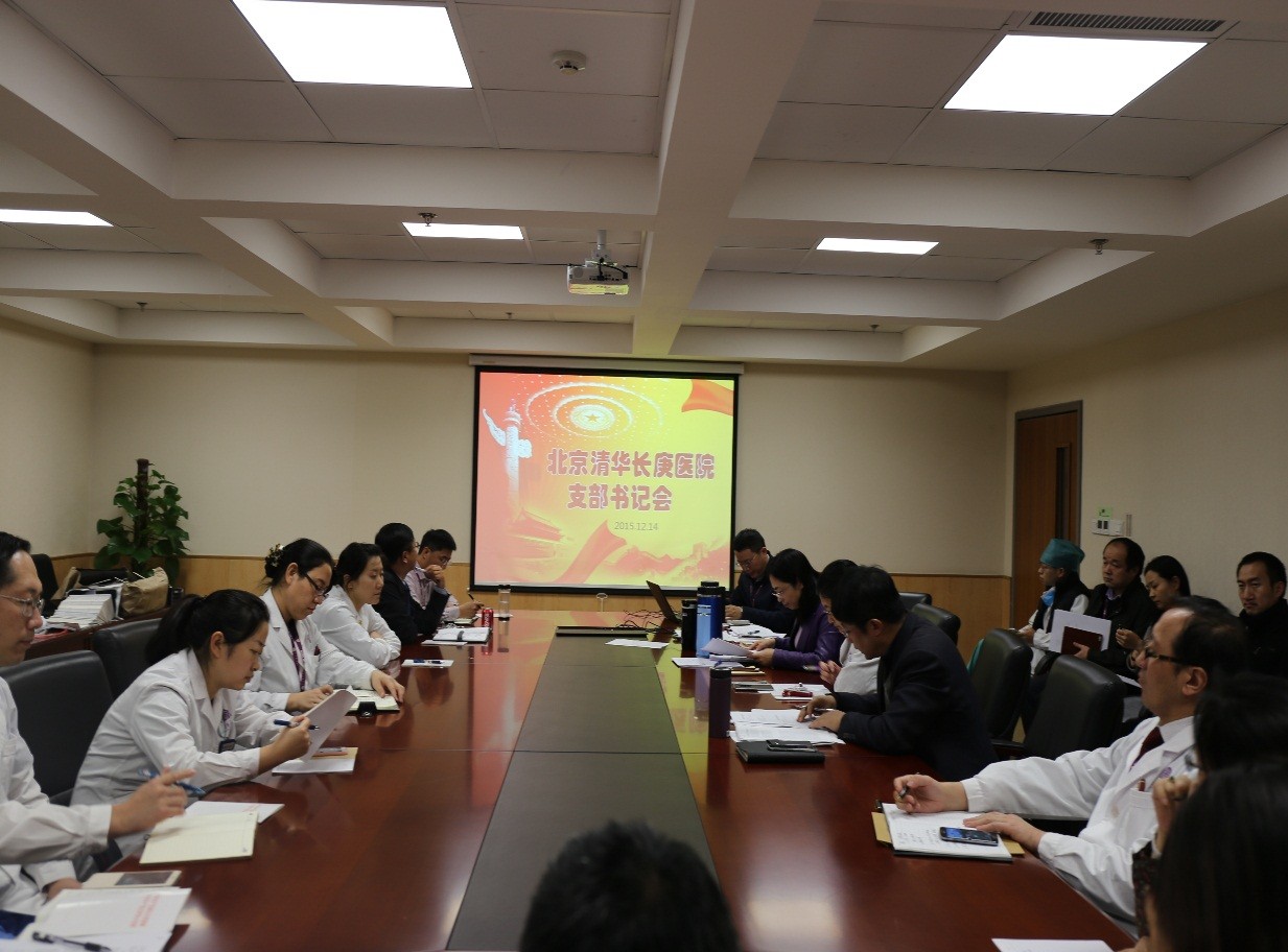 会上,王志华书记传达了近期清华大学会议精神及通报的违纪案例和学校宣传会议精神,组织院党委委员和支部书记学习《中国共产党廉洁自律准则》和《中国共产党纪律处分条例》,通报了医院近期工作重点。王志华书记强调各支部要结合“三严三实”、十八届五中全会中“健康中国”建设精神、“十三五”规划等热点和医院工作特点进行理论学习,保质保量、形式多样地开展支部组织生活。