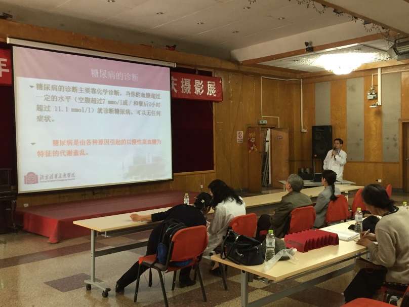义诊开始前,内分泌科肖建中医师、心脏内科刘芳医师通过生动详实的多媒体资料,为清华大学在校师生进行了题为“2型糖尿病患者多重心血管危险因素控制”与“高血压防治策略”的健康宣教,并详细解答了在场师生及家属的困惑。