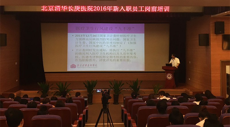 (北京清华长庚医院7月18日电 党办 周颖喆)为深入贯彻落实《国家卫生计生委印发加强医疗卫生行风建设“九不准”的通知》(国卫办发【2013-49】号)文件精神,按照清华大学和我院党风廉政宣传月工作部署,7月18日上午,我院党办杨林副主任为2016年新入职员工开展加强医疗卫生行风建设“九不准”培训。