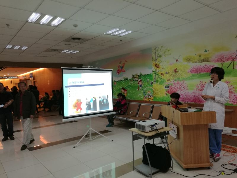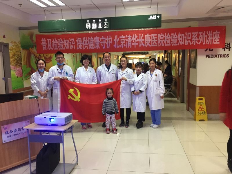北京清华长庚医院11月2电(医技第一党支部 李勇 李润青)2016年10月20日上午,医技部第一党支部在我院一层儿科门诊区举行了“普及检验知识,提供健康守护一北京清华长庚医院检验知识系列讲座”的第三次活动。此次活动由检验科张玉娟、高汇迪进行现场讲解,内容涉及儿科常见检查、检测项目介绍,标本留取时的注意事项及儿科过敏原检测的临床意义及解读。