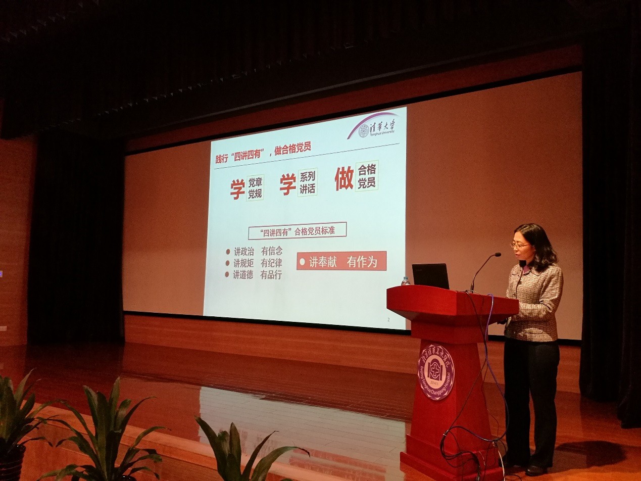 北京清华长庚医院11月30电(通讯员 段鹏)11月30日中午,北京清华长庚医院内科第二党支部、心血管党支部、妇儿党支部及行政第一、行政第五党支部80余名党员、预备党员及积极分子于行政楼集会厅召开 “两学一做”之“讲奉献、有作为”专题学习教育,医院党委书记周月红出席并为我们讲党课。