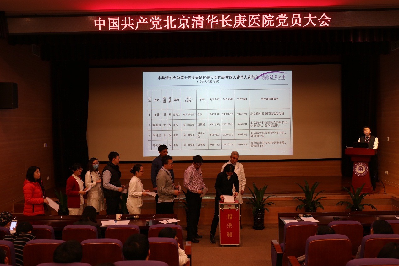 12月15日下午,中共北京清华长庚医院党员大会在我院集会厅隆重召开,选举产生出席中共清华大学第十四次党员代表大会代表。我院党委书记周月红、副书记陈旭岩、赵刚出席会议。会议由院党委副书记陈旭岩主持,本次大会应到会党员247名,实到会党员223名。