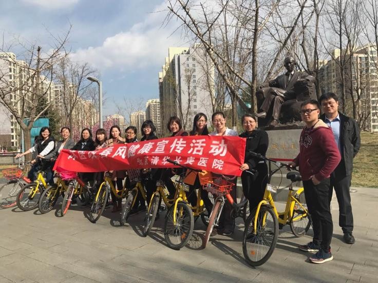 支部成员于活动前自行学习医改新政宣传材料“北京市属医院推进医药分开综合改革宣传问答口袋书”,并根据材料内容设计了考题。活动当天,支部响应国家节能减排绿色出行号召,使用时下流行的共享单车,从医院骑行至奥林匹克森林公园,并沿途宣传北京市医改方案。