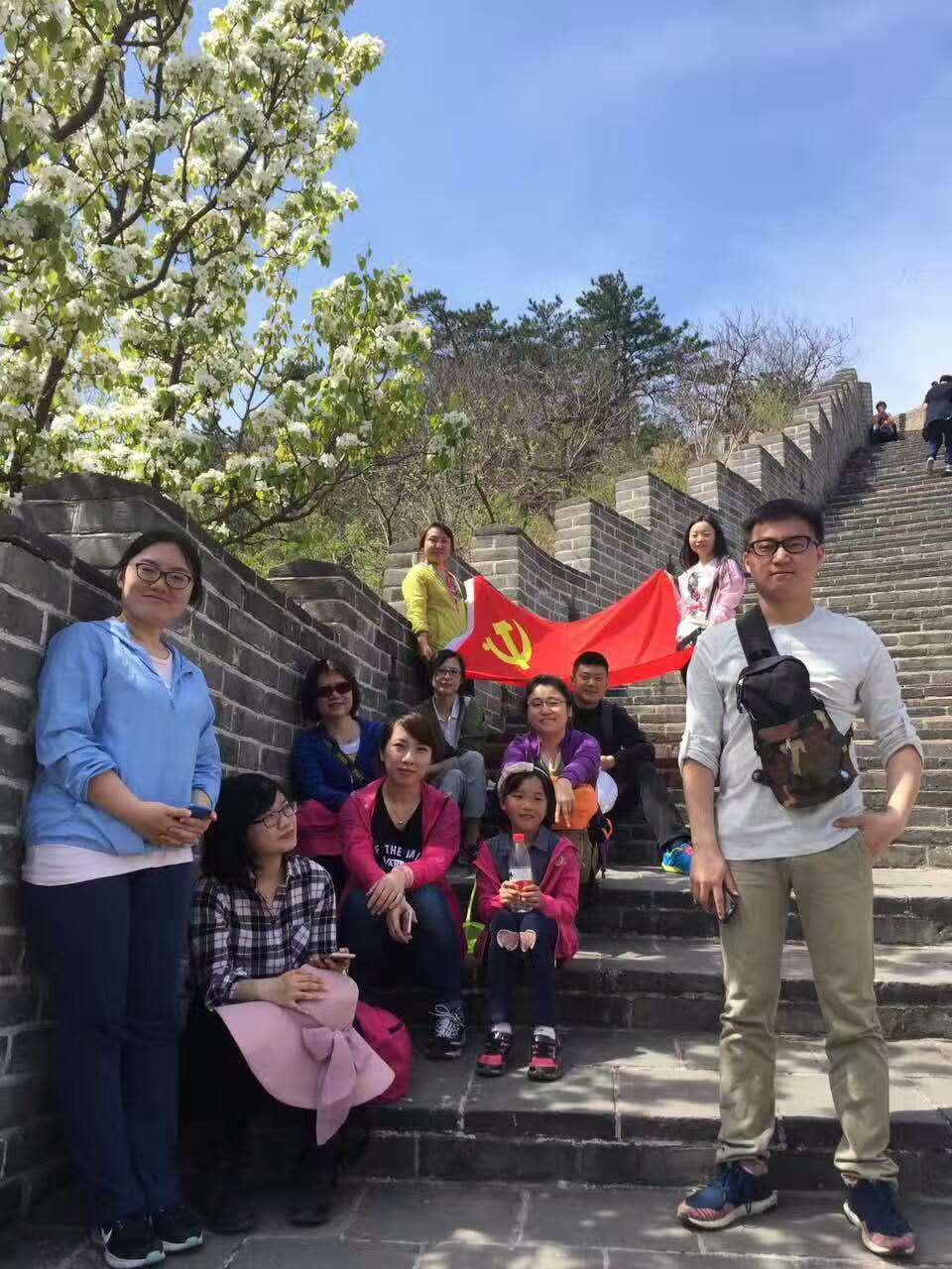 清华长庚医院4月15日电(科教处 李牧) 2017年4月15日,春光明媚,晴空万里,清华长庚行政第一党支部联合工会小组开展了“登长城、创新高、共健康”活动。党办、院办、人资组和科教处的党员、工会小组成员及家属二十余人参加了活动。
