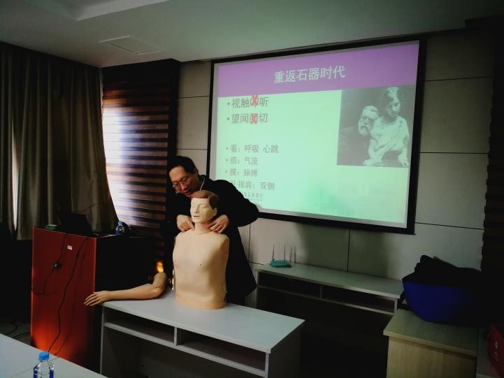12月20日,急诊科支部经过精心准备,携带模拟人再次进入清华大学校园举办该次活动。急诊科党支部书记张向阳从如何快速准确地识别威胁生命的体征开始,从快速识别快速处理的实用角度出发,为大家深入浅出的讲解了发生晕倒的常见表现和现场的处理办法,如何简单止血包扎,如何正确转运患者,为校园常见突发健康事件的应急处理提供指导。。讲课内容与模型演示相结合,用通俗的语言,比拟生活中的现象加深理解,生动准确,印象深刻。张向阳书记结合临床经验及医学理论知识为各位工作人员提供指导的同时,也为大家科普了部分基础疾病知识。经过前期双方的沟通和准备,培训讲座的内容物拥有具体指向性,都是业中心的工作人员工作中遇到的或可能遇到的实际问题,因此兴趣盎然,听得津津有味,也随着讲者的动作,在自己身体上寻找检测大动脉搏动的位置、常见止血位置。