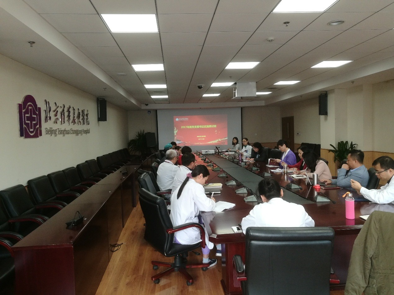 周月红回顾了2017年医院党委及各党支部建设方面开展的主要工作。2017年对于医院党建工作来说是很不平凡的一年。在北京市医药综合改革中,我院党支部充分发挥了党支部战斗堡垒和党员先锋模范带头作用,出色完成了医院专项工作;针对中央巡视组对学校党委的专项巡视中提出的整改意见进行了深刻的检讨,列出了整改清单并制定了专项整改方案,目前各项整改举措全部按计划进度完成;在北京市医院管理局党建绩效考核检查中,专家组对医院党建和思想政治工作取得的成绩给予充分肯定并获得了满分的好成绩;医院结合推进落实 “两学一做”学习教育常态化制度化要求,深入学习贯彻十九大精神和习近平新时代中国特色社会主义思想,在推动医院基层党建工作责任制落实落地、抓严抓实党支部建设、进一步做好党员发展和教育管理服务等方面取得了明显进展,在医院的建设发展中发挥了强有力的政治引领作用。