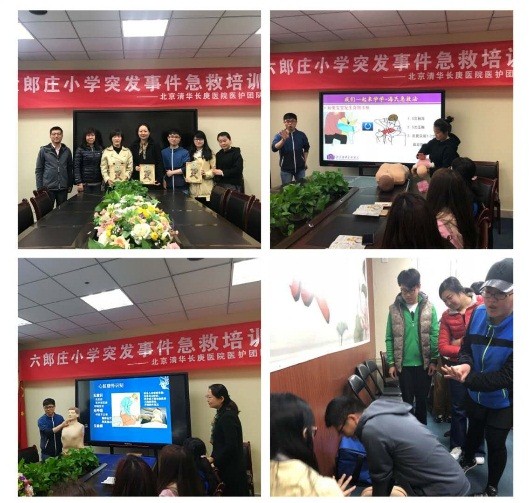 (北京清华长庚医院 2018年4月8日电 通讯员陈梦妍) 古人云:“赠人玫瑰手有余香。”有这样一个医护团队每逢春秋季节都会习惯性的走进学校宣讲急救知识,让更多的人了解急救,了解的同时也能更好的运用和掌握,为了挽救更多生命,将急救知识普及大众从校园辛勤的园丁开始。2018年4月13日下午北京清华长庚医院重症党支部、急诊科党支部及急重症护理组联合海淀区六郎庄小学举行了一场“急救知识培训”的专题活动。急重症的医护人员为六郎庄小学的老师们展现了一场专业的、易学的急救知识培训。重症党支部书记赵文静、急诊科徐婷医师、急重症护理人员及六郎庄全体教师参加了本次活动。