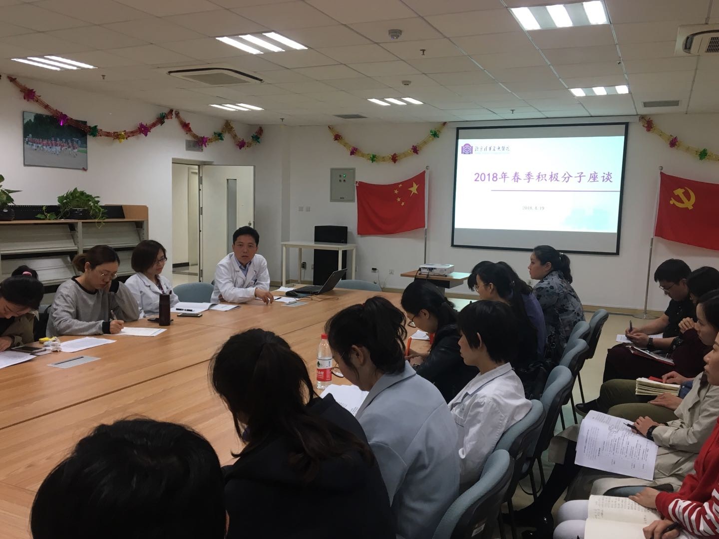 4月19日下午,北京清华长庚医院在“党员之家”举办了积极分子座谈会,党委书记周月红和优秀党支部书记、优秀党员代表王克霞出席。会上皮肤科赵邑主任、王睿、孙振兴、王宇、赵雪莲等24名积极分子结合讲座报告的内容,围绕入党动机、如何认识全面从严治党、如何理解合格教职工党员标准以及自我努力方向等主题进行了深入的交流和讨论。优秀党员代表王克霞结合工作实际勉励大家不仅要在组织上入党,更重要的是在思想上真正入党,不忘初心,要按照党员标准严格要求自己,自觉遵章守纪,坚持党和人民的利益高于一切,吃苦在前、享受在后,克己奉公、为医院建设、为国家多做贡献。