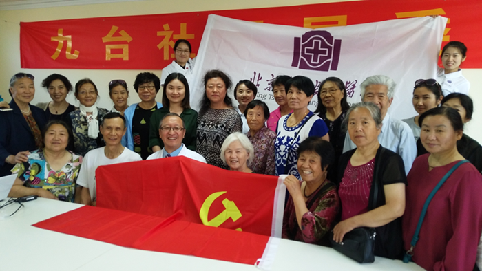 北京清华长庚医院5月30日电(外科第一党支部 周小懿 刘金霞)为响应院党委“不忘初心、牢记使命”主题教育和“基层党组织建设提升年”活动的号召,外科第一党支部积极组织党支部特色活动,“走进社区,服务群众”,于2018年5月30日上午9点,在党支部书记罗斌同志的带领下,支部党员及入党积极分子走进天通苑九台社区,为九台社区居民进行医学知识健康科普,旨在提提高广大居民对疾病认知帮助百姓树立正确的防病、治病理念,鼓励大家养成良好的生活习惯、定期体检做到疾病早知道、早预防。