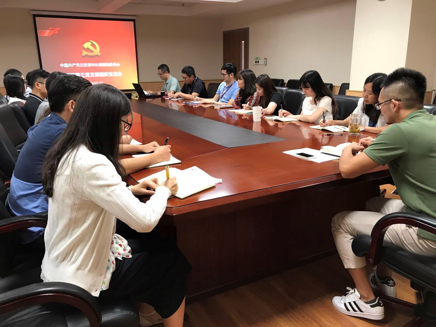 清华长庚7月27日电(通讯员杨艳) 2018年7月27日上午,行政第三党支部在二号楼四层会议室一组织召开新一届党支部第一次组织生活会,13名党员、5名积极分子参会。会议由党支部书记沈际勇主持。