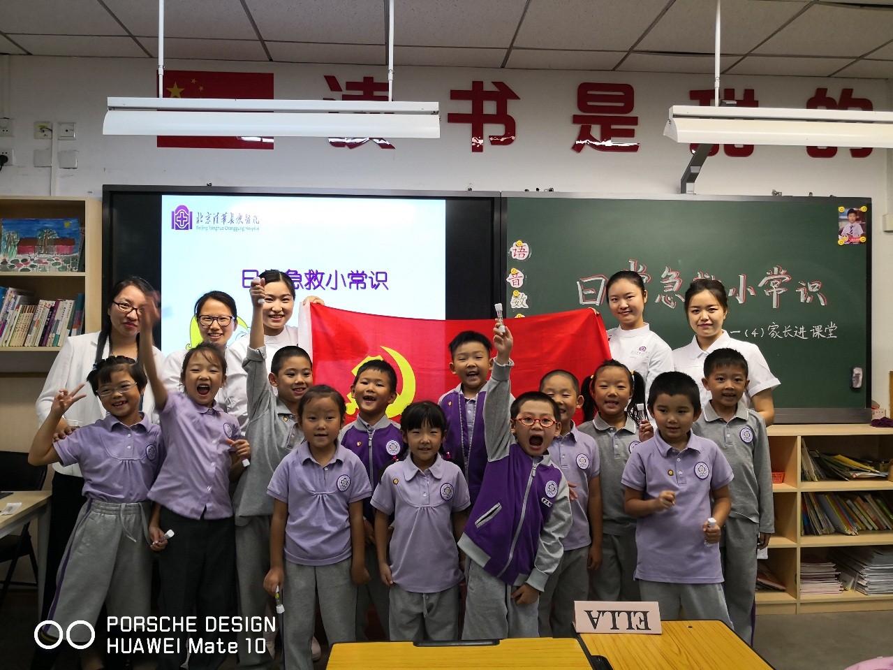 为了加强老师和同学们自救、互救的意识,学习一定的自救互救的方法,2018年9月25日下午急重症第二党支部联合清华大学附属小学校本部举行了一场“急救知识培训”的专题活动。急重症第二党支部的党员为清华大学附属小学一年级的同学们展现了一场生动而形象、简单而易学的急救知识培训。