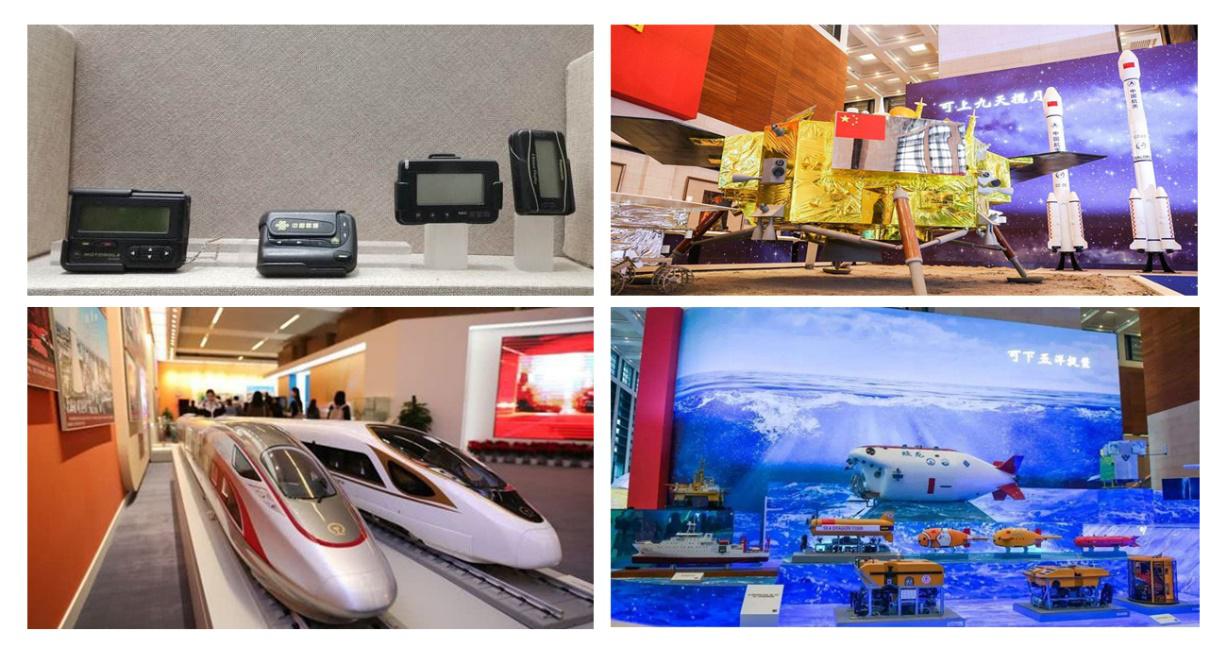 在不同的展区,一行人回顾了随着时间推移,随着科技进步所制造的代表产品。收音机、人造卫星“东方红”,是60后、70后所熟悉的科技产品。黑白电视,电话成为家家期盼的电器,这些产品为以后的电视发展奠定了坚实的基础。《黑猫警长》,《舒克与贝塔》是80后熟悉的国产动画片,那个时候中国的动画事业开始发展,从简单到复杂,从平面到三维立体。90后的生活更加丰富,超级女声、开心辞典、勇往直前等等,电视人在创新,电视事业在飞速发展。一些展区展示了我国不同时期与世界其他国家建立友好交往所赠送的礼品,见证了我国外交事业的一步步脚印。我国目前高科技产品的发展走在世界前沿。展厅展示了高铁动车板块、深海钻井平台技术等,都是依靠改革开放创造了一个又一个的奇迹。