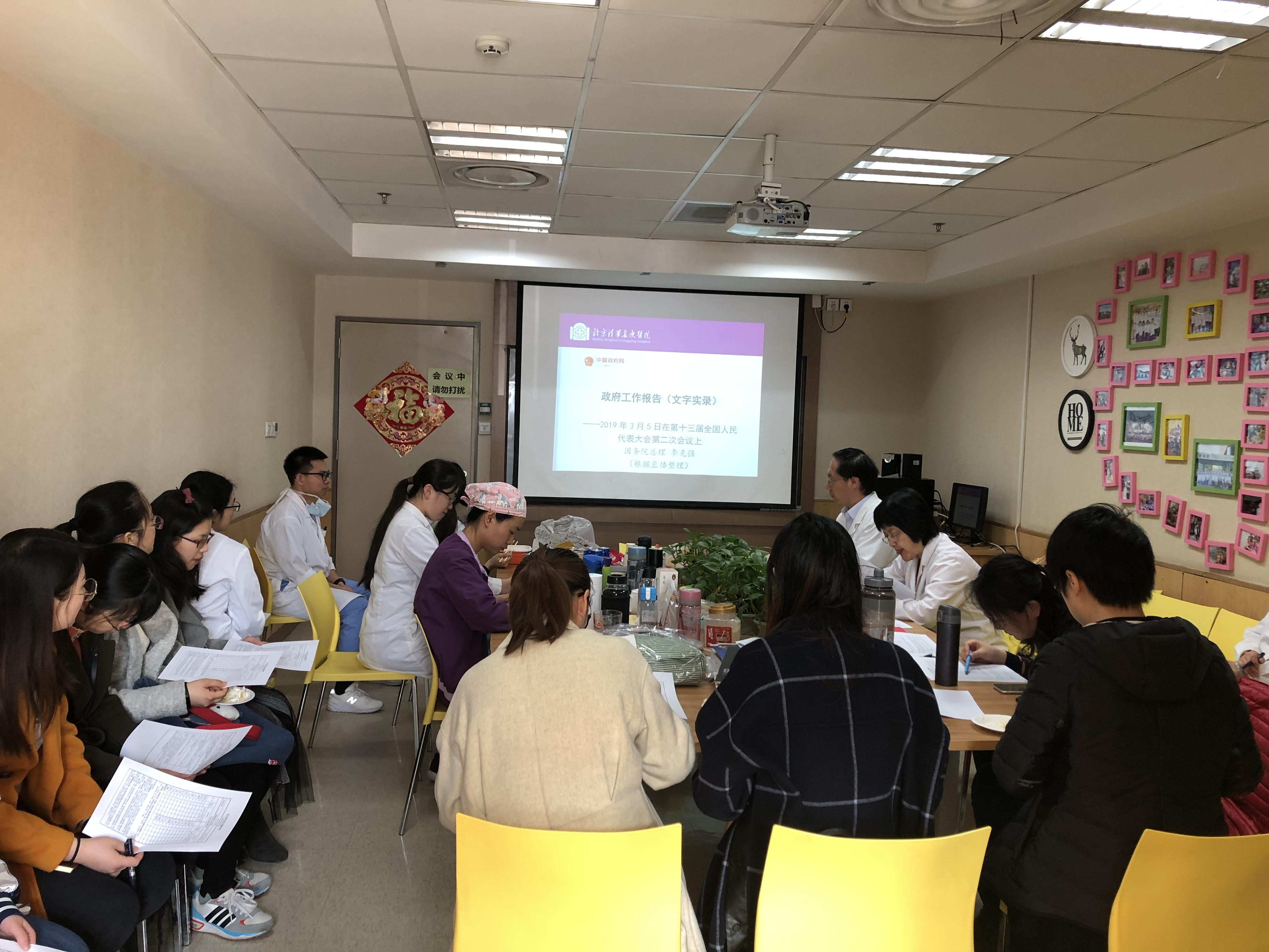 北京清华长庚医院3月13日电(通讯员 刘忠涛)3月8日中午,急重症部第一党支部在讨论室集中学习今年人大会议上李克强总理作出的政府工作报告,并开展党支部工作评议和党员民主测评工作。