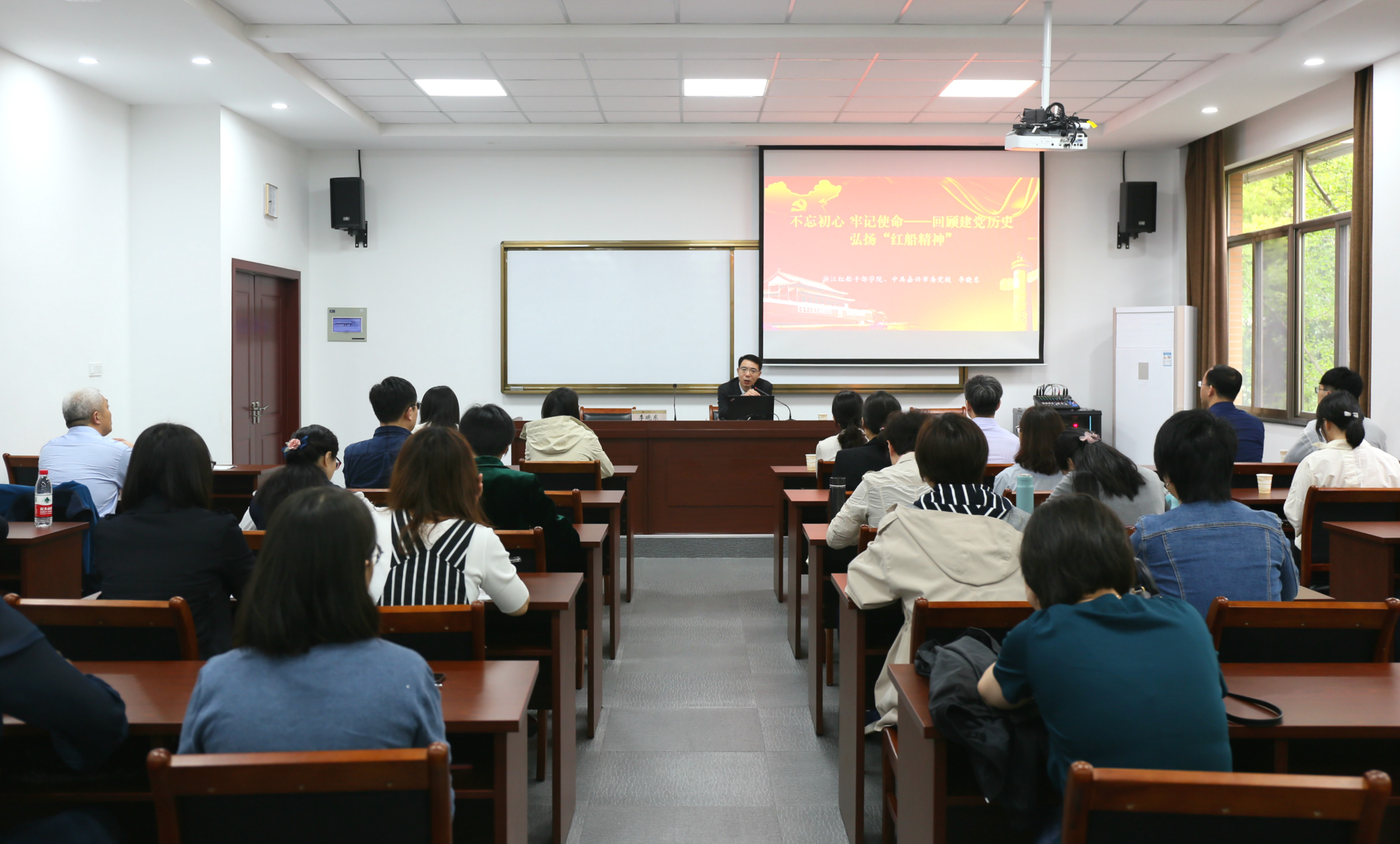 20日一早,一行人来到浙江红船干部学院聆听党课“不忘初心,牢记使命——回顾党建历史,弘扬红船精神”。通过党课,大家了解到“红船精神”作为中国革命精神之源的重要内涵,无论是开天辟地、敢为人先的首创精神,坚定理想、百折不挠的奋斗精神,还是立党为公、忠诚为民的奉献精神,都是中国共产党人至为宝贵的精神财富。在党和国家各项事业快速前进的新时代,更需要从回溯“红船精神”的初心中汲取力量。