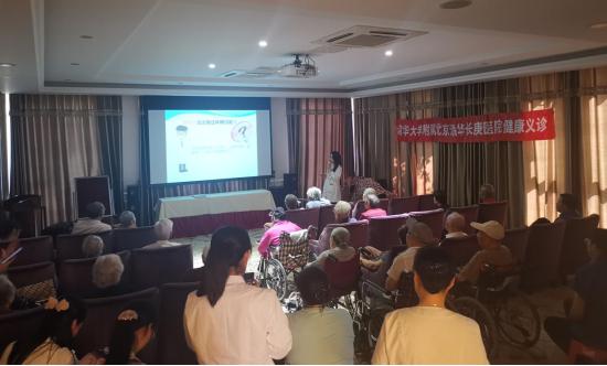 首先进行的是健康讲座,冯新红同志举例介绍了阿尔茨海默病的主要病征表现,如记忆力减退,处理熟悉事情出现困难,语言表达困难,时间地点人物混淆,判断力减退等,如果发现上述情况要及时到医院就诊。随后,金丽霞同志为到场的老人们讲解补钙相关知识,她介绍到,补钙可以防止骨质疏松、骨折,增加老年人运动耐受性,建议50岁以上人群每天应补充1000-1200毫克钙及800-1200国际单位维生素D,推荐饮食补充钙质和维生素D,此外还应多晒太阳,或者口服制剂。讲座结束后,几位医师悉心解答了老人们提出的问题,给予了专业的健康建议。养老机构负责人和在场的老人们对医院组织专家来进行讲座表示诚挚的感谢,现场气氛轻松活泼。