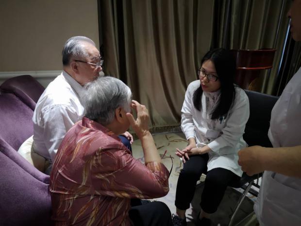 一行人首先来到养老机构二层的报告厅,这时,午休后的老爷爷老奶奶们陆续来到现场,他们得知清华长庚医院内科专家的义诊活动,都非常积极,有的老人一进场就和医生们聊了起来。