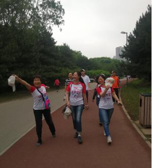五月的奥林匹克森林公园青草茵茵,绿树掩映,春意盎然。早上八点,妇儿部党团支部的成员们齐聚奥森东门,身着“WE ARE 伐木累”的统一队服,展开一场健康、绿色、低碳、环保的活动。本次健步走活动全程五公里。大家迎着凉爽宜人的春风,兴致高昂,大步前进,让身心在优美闲适的环境中得到充分锻炼和放松,享受着汗水带来的愉悦。在活动过程中来自不同支部的成员互相交流支部工作的开展、对时事的看法等,在强身健体的同时开拓思维,加强支部间的联系。