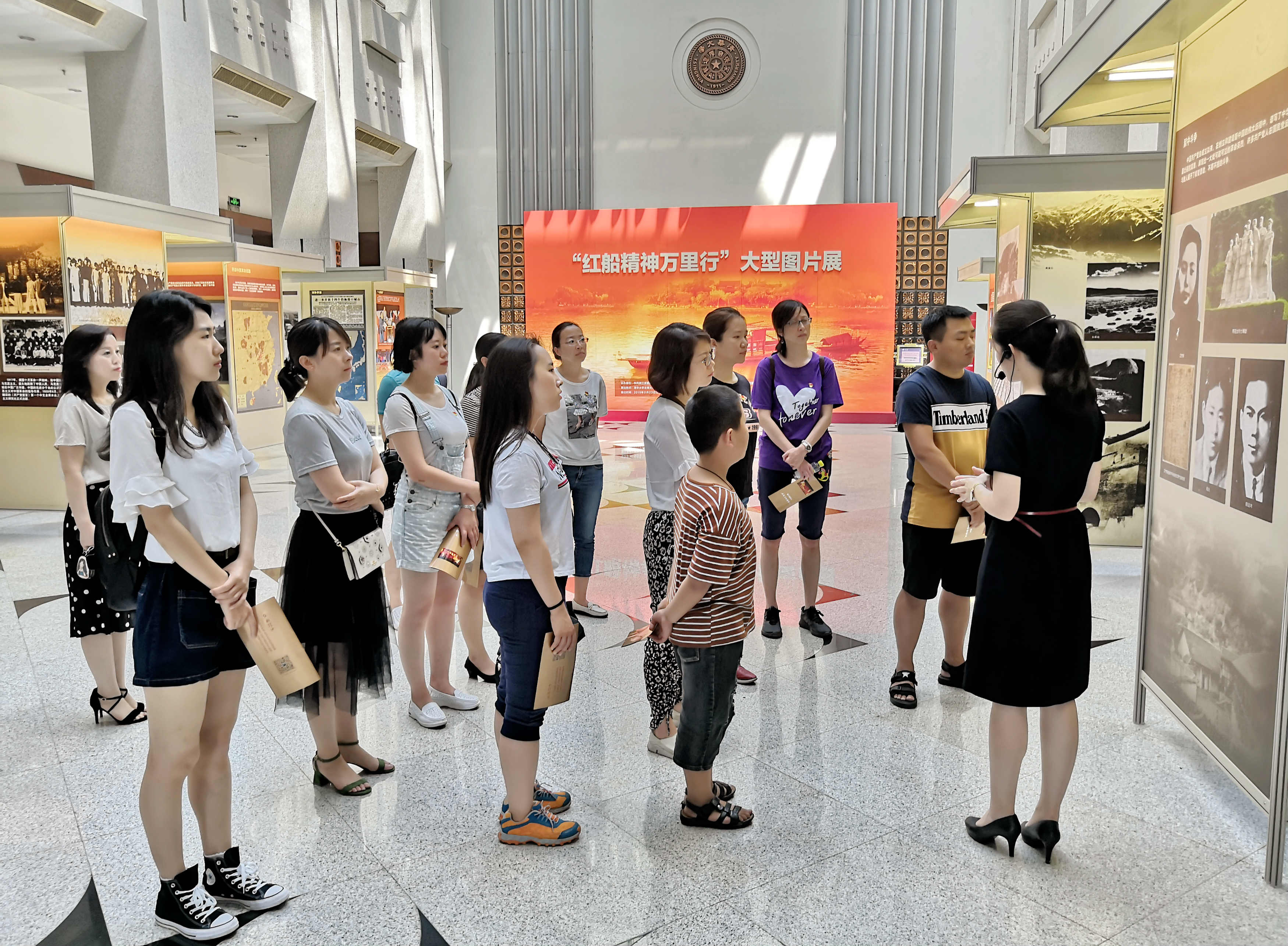 北京清华长庚医院7月2日电(通讯员 刘妍君)为深入贯彻党的十九大精神和习近平新时代中国特色社会主义思想,开展好“不忘初心,牢记使命”主题教育,迎接新中国成立70周年,6月29日,在党的生日前夕,北京清华长庚医院行政第一党支部和专科部第一党支部于联合组织党员积极分子及职工家属前往清华大学,参观在主楼大厅举办的“红船精神万里行”大型图片展。院党委副书记王克霞,党支部书记柳玉倩、张玉焕带队。该展览由清华大学主办,清华大学美术学院等承办、清华大学美术学院展示设计研究所协办。