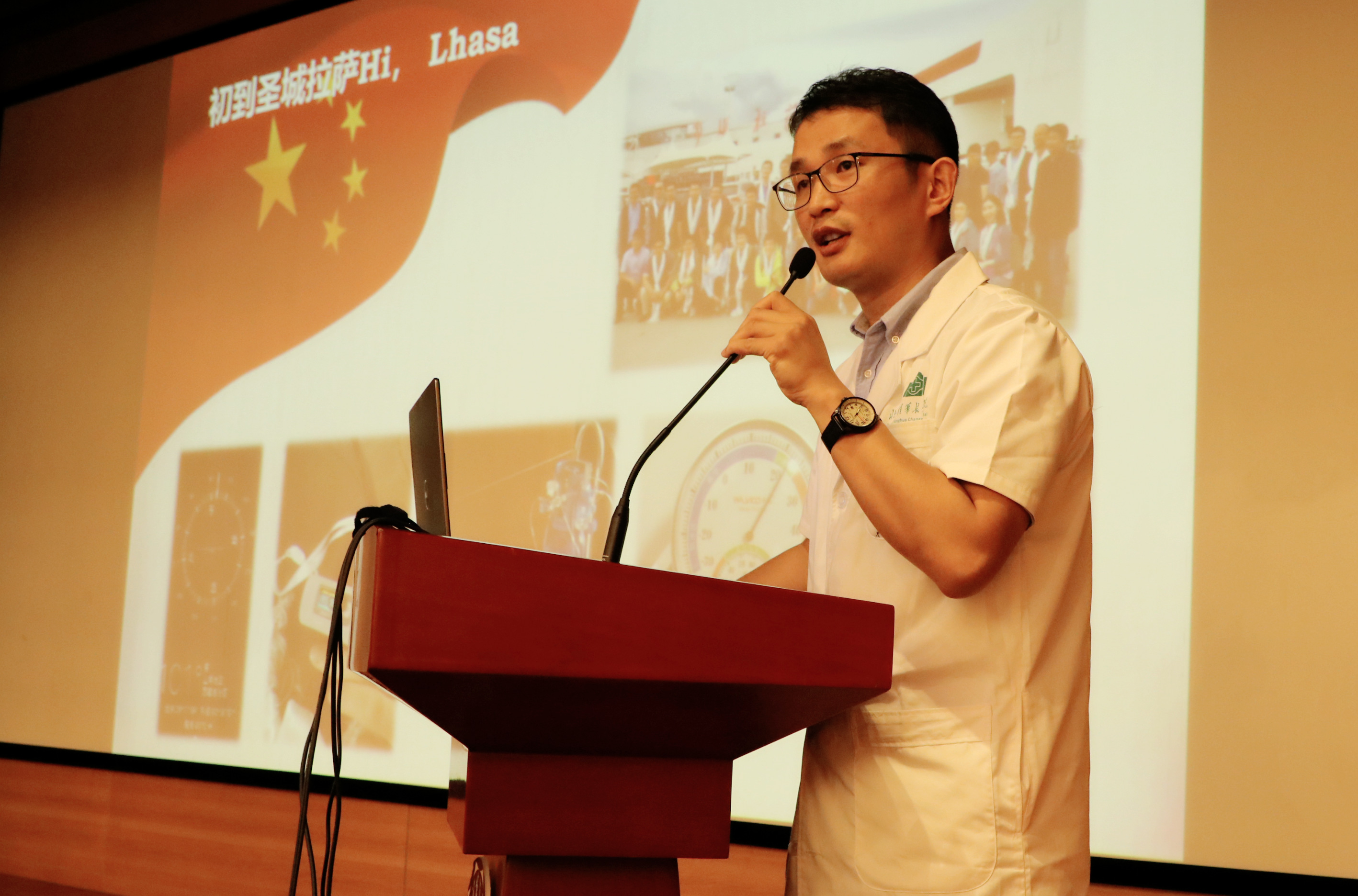援藏归来的泌尿外科医师付猛以“一年援藏、一生缘藏”为题作主题发言。“作为一名青年医生,一名党员,在祖国需要的时候站了出来,尽了我所能及的绵薄之力,此生倍感荣耀。”没有大家的健康,就没有人民的小康,健康中国,包含着我们祖国每一寸土地上的人民的健康,清华长庚的足迹跟随祖国的召唤也走到了高原,走到了边远地区,贡献着我们清华长庚人的力量。