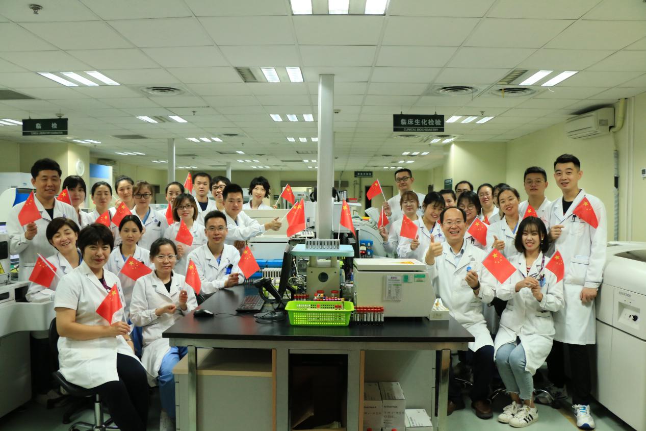 《我和我的祖国》嘹亮的歌声回荡在科室上空,充分展示了大家昂扬向上的精神和爱国热情。此次活动是医院开展“不忘初心、牢记使命”主题教育的一部分。习近平总书记在党的十九大报告中强调,不忘初心,方得始终,中国共产党的初心和使命,就是为中国人民谋幸福,为中华民族谋复兴。医技第一党支部号召大家不忘献身医学初心,恪守医德,立足岗位,勇于担当,以实际行动为患者谋健康,以精湛的医术献礼新中国成立70周年。