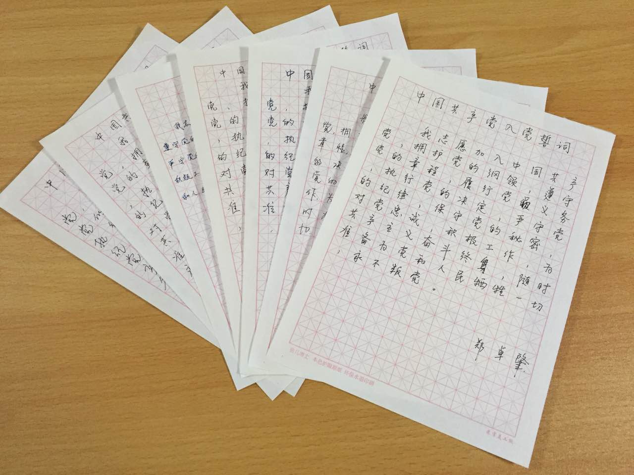 第十二党支部党员手抄的入党誓词