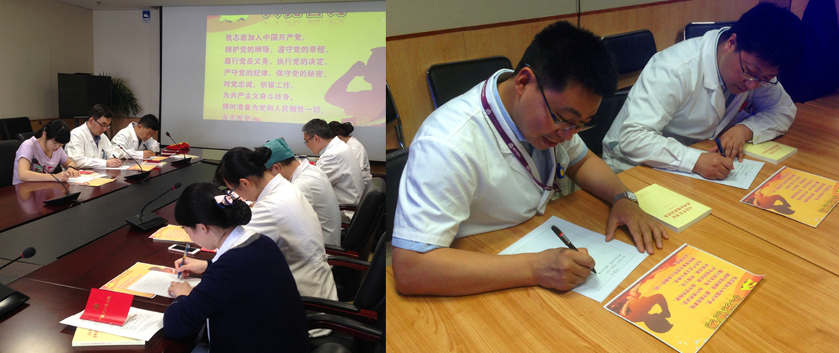 全体党员工整抄写誓词&血管外科吴巍巍主任、赵俊来医师术后认真完成