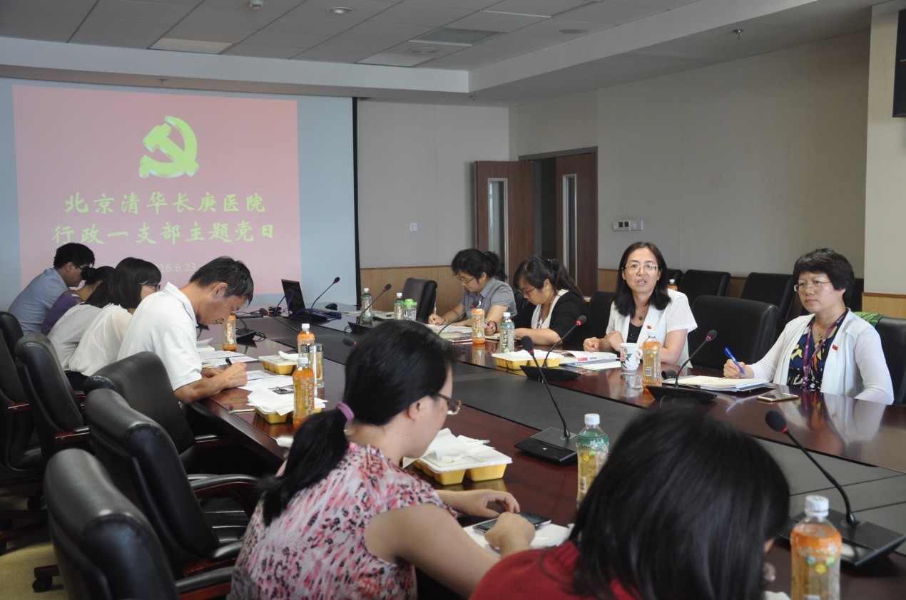 (通讯员 刘妍君)在即将迎来中国共产党建党95周年之际,6月23日中午北京清华长庚医院行政第一党支部以扎实践行“两学一做”学习教育为抓手,围绕“七·一”主题教育,开展了紧密结合实际工作的“讲规矩、有纪律”主题党日活动,主要内容包括:“共读一本书、自学一专题、共上一堂课、同列一清单”。活动由支部书记王克霞主持,支部全体党员参加,院党委副书记周月红受邀出席并讲党课。