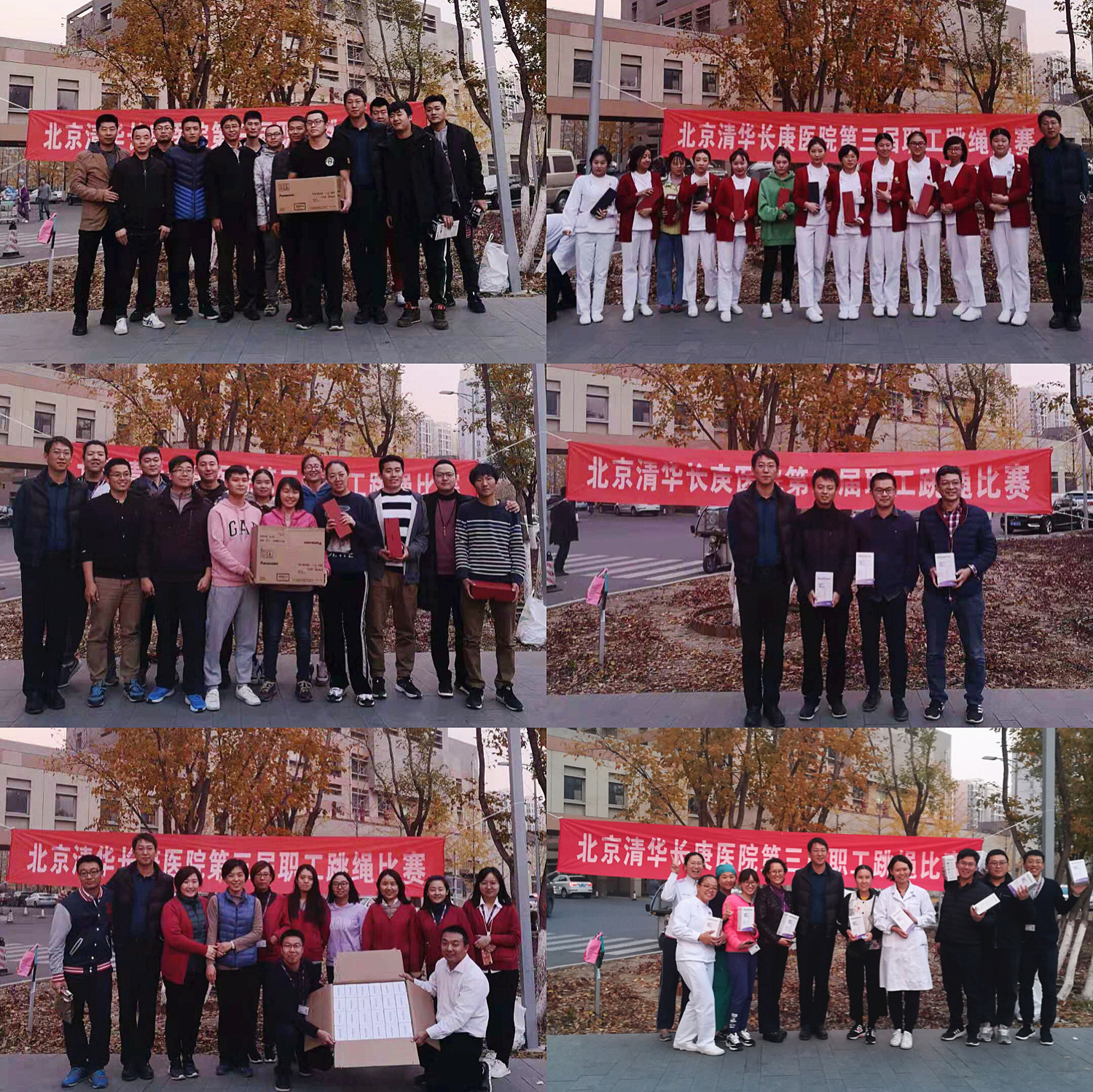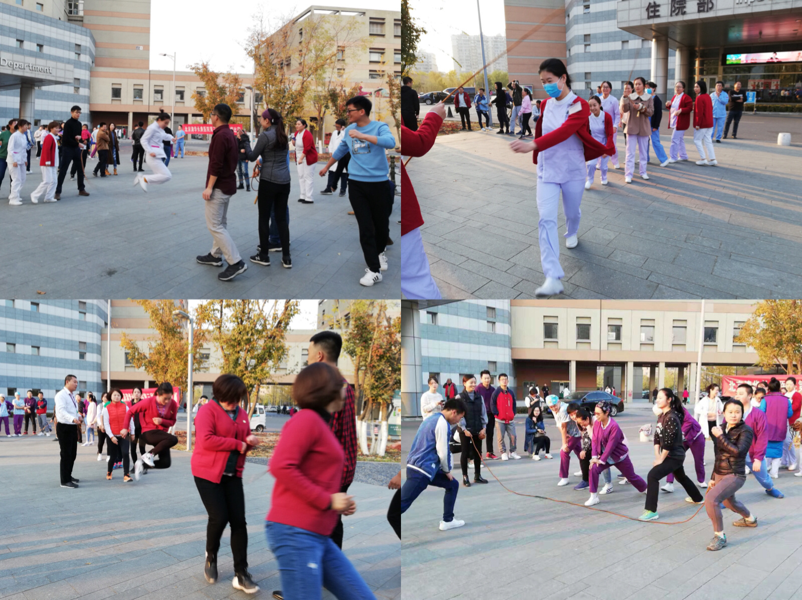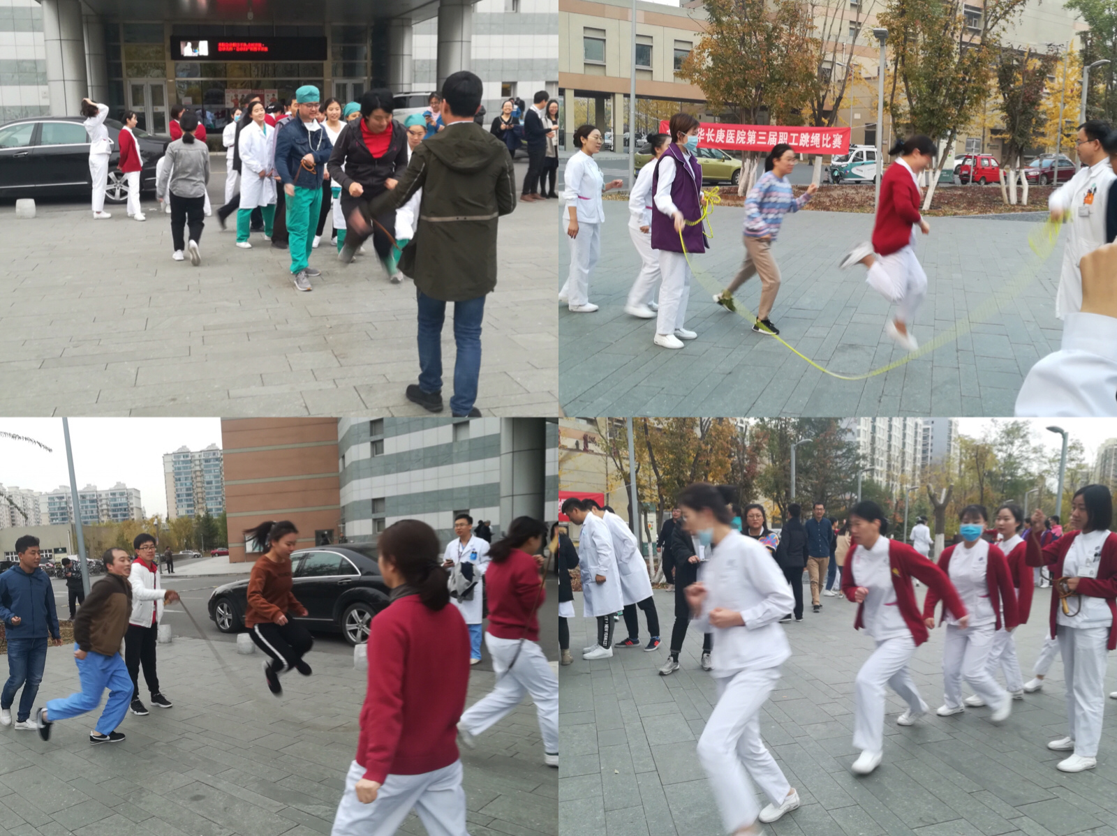 集体跳绳比赛是职工们喜闻乐见的健身活动,集速度、技巧和体能为一体,别开生面的活动既丰富了我院职工的业余生活,增强了职工的体质,又缓和了紧张的工作压力,愉悦了大家的心情。相信院你全体职工会继续以团结奋进、积极向上的精神面貌,全心全意地投入到工作中,为医院的发展谱写更加华美的乐章。