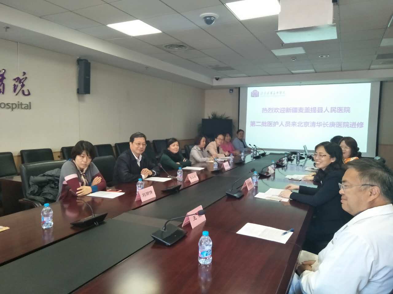 2016年7月,北京清华长庚医院接收了清华同方资助的第一批新疆麦盖提县人民医院进修医师,在清华大学校党委领导和双方党委的高度重视下,首批进修生圆满完成进修任务返回新疆,进修培训效果突出,获得新疆麦盖提县人民医院的大力肯定,并期待继续深入开展人才培训工作。