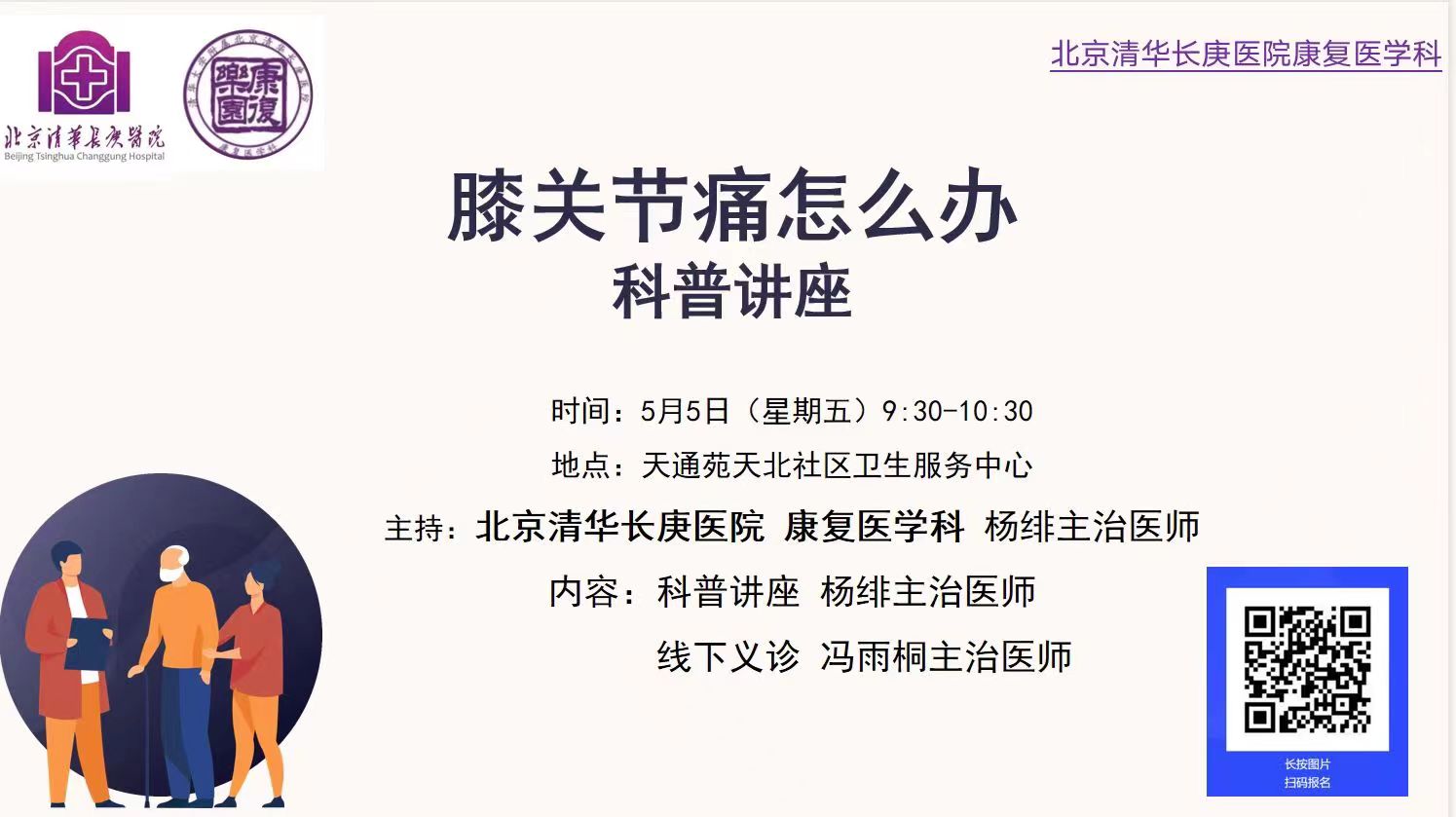 五、健康咨询:欢迎扫码报名,北京清华长庚医院康复医学科医师团队将在讲座后提供健康咨询服务。