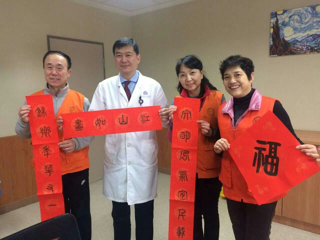 清华长庚医院2月1日电(通讯员 张璠)2016年1月29日,北京清华长庚医院的门诊大厅一角传来了悠扬典雅的《高山流水》,数十名社区居民与来院患者早早地排起了长队。五名身着橘红色制马甲的志愿者老师们早早就位,现场挥毫泼墨送上春联和福字,也献上志愿者们的新年祝福。
