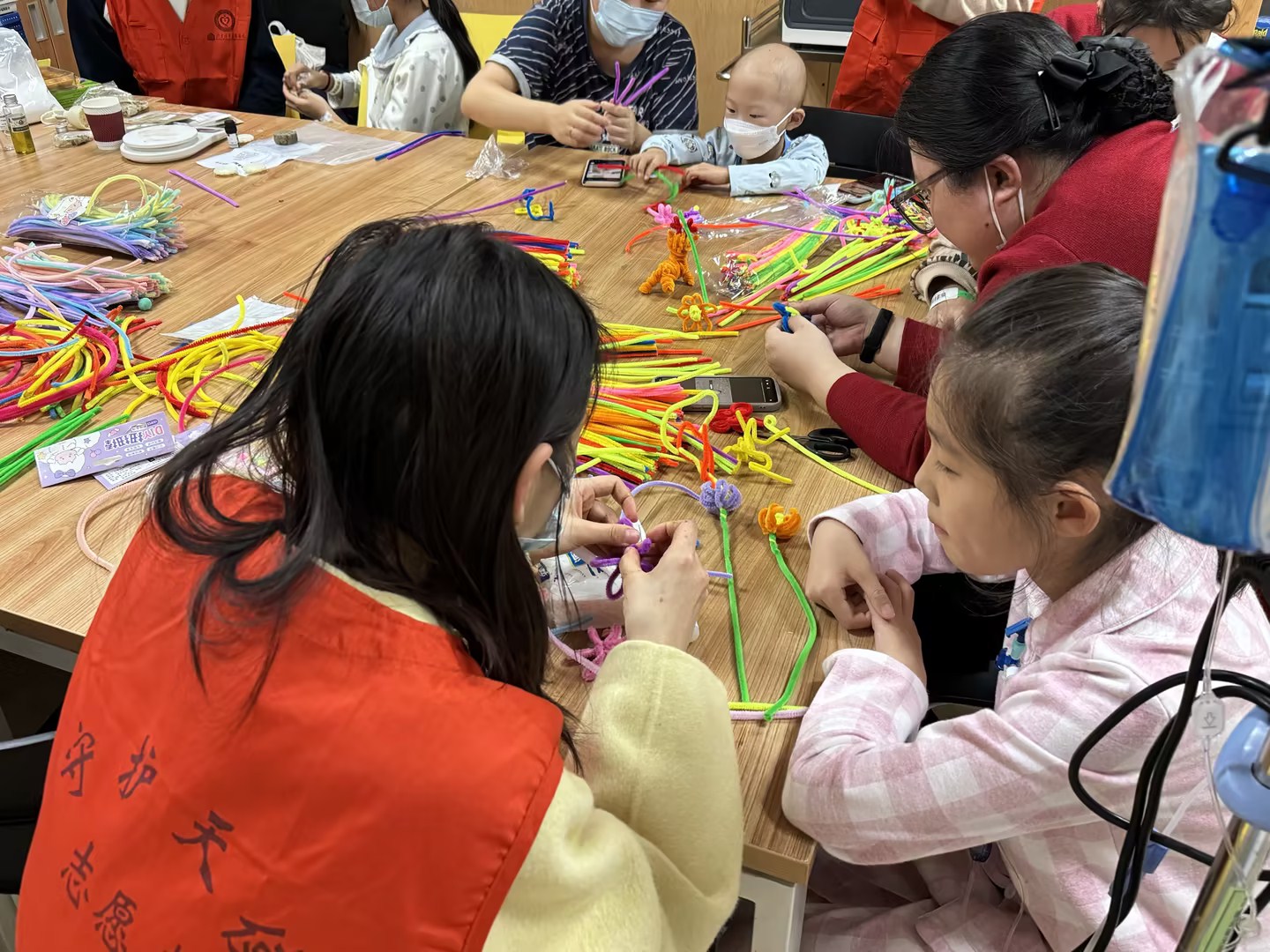 “你做的好棒,是怎么做的呀”、“我来教你吧”、“我想把这朵小花送给志愿者姐姐”......温暖话语间,丰富住院时光、释放情绪压力、锻炼团队协作......“清听心灵手工坊”不仅为住院患儿营造了一片温馨舒适的艺术疗愈区域,也为青年志愿实践、员工身心纾压提供了新的思路经验,受到小朋友与大朋友的一致好评。